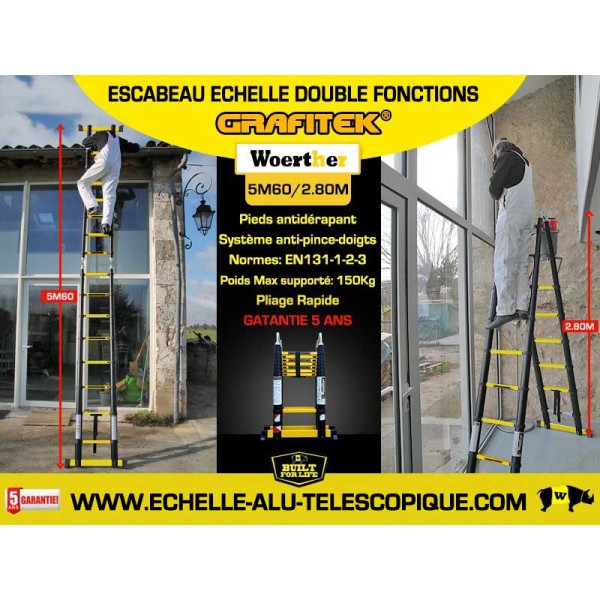 Découvrez le modèle ESCABEAU ALU TÉLESCOPIQUE 5M60 - WOERTHER - GAMME PRO GRAFITEK pour tous vos travaux de bricolage, aussi bien pour les particuliers que les professionnels.